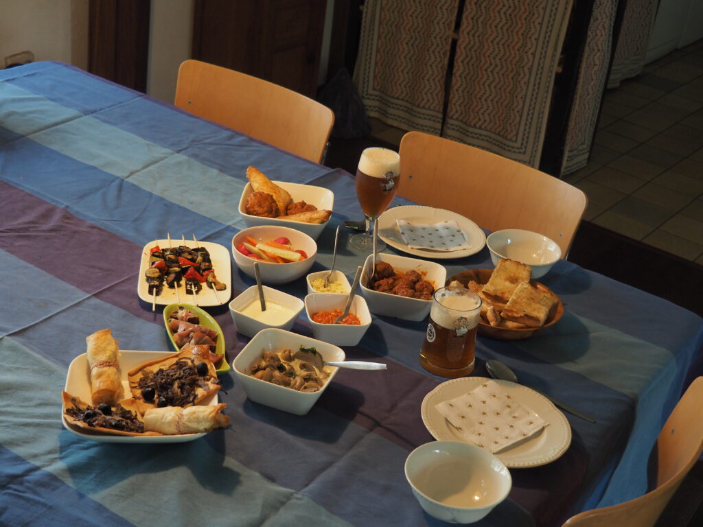 - 3 dips : romescosaus, knoflookgemberyoghurt, homemade kruidenboter