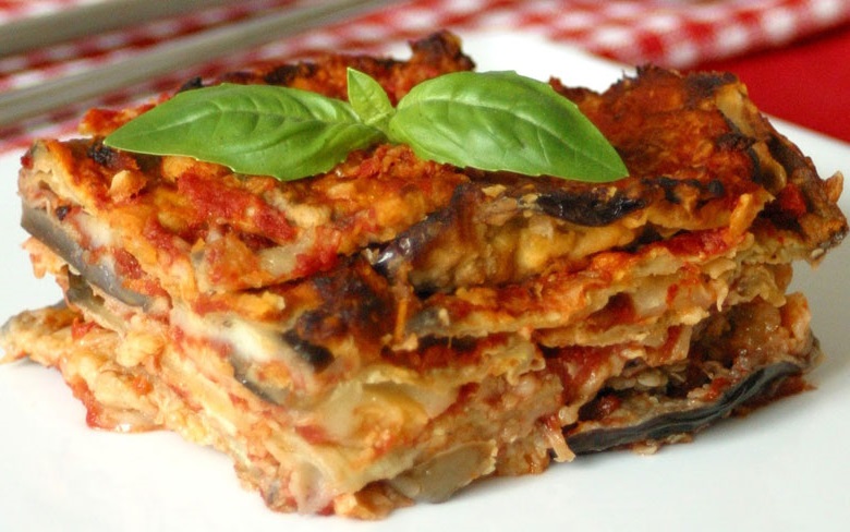 Parmigiana di melanzane. Vegetarisch € 12,50 p.p.