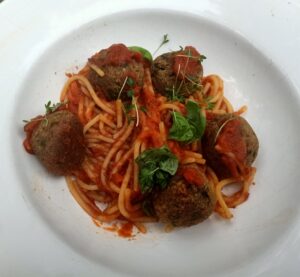 Dit is de vegan variant van “meatball spaghetti”, dat eigenlijk weer een veramerikaniseerd Italiaans gerecht is. In Italië noemen je balletjes ‘polpette’. Ze worden ook wel van andere ingrediënten gemaakt, zoals courgette, of aubergine of van brood, dan heten ze polpette di pane (vergelijkbaar met knoedels).