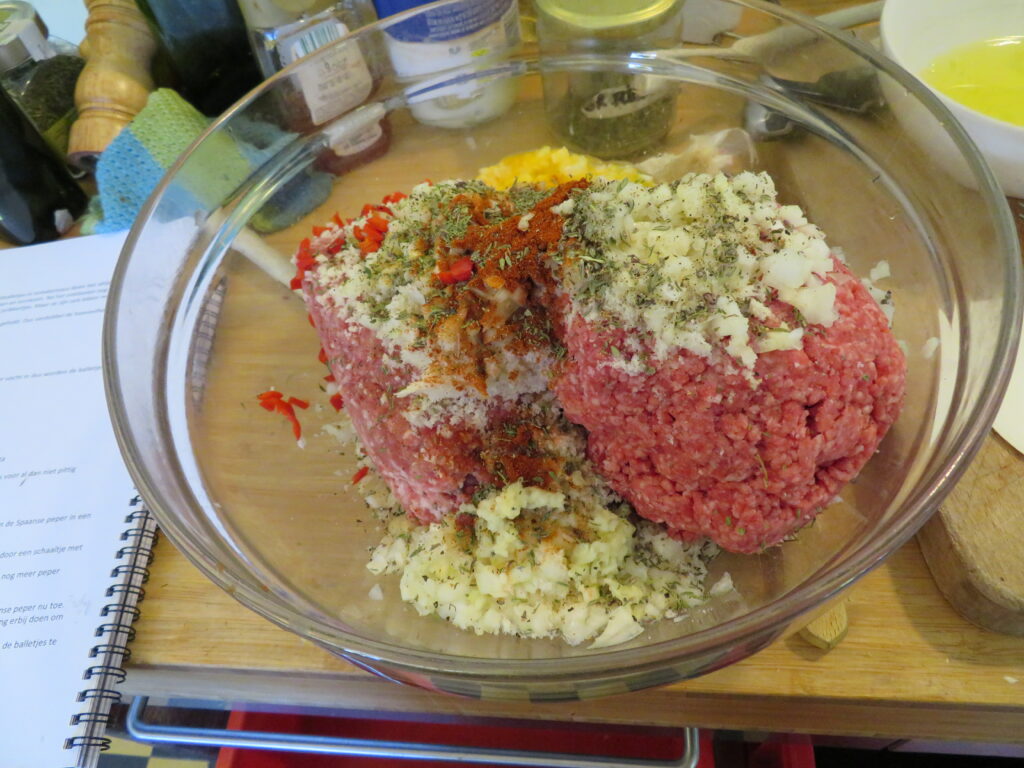 - 500 gram liefst biologisch gehakt (daar zit minder vocht in dus worden de balletjes lekker bruin)