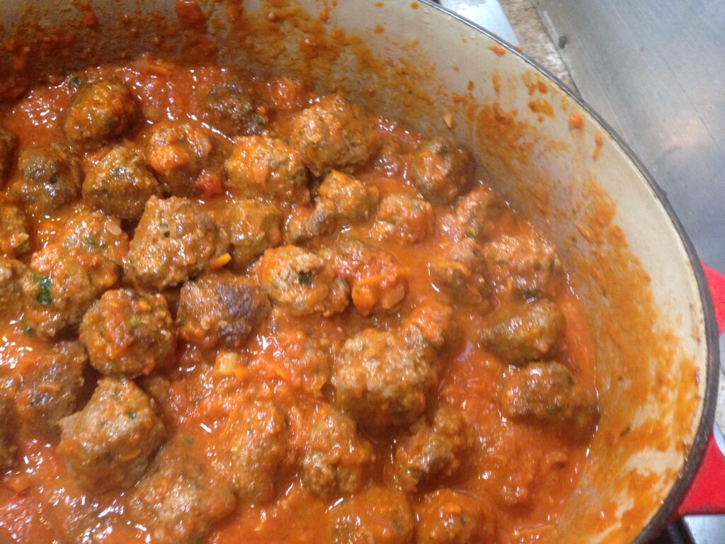 Laat 10 minuten zachtjes sudderen, totdat de saus wat is ingedikt en leg dan de balletjes terug in de pan en stoof nog 10 minuten. Roer niet meer maar schud de pan om, om de balletjes te keren (anders schep je ze misschien kapot).