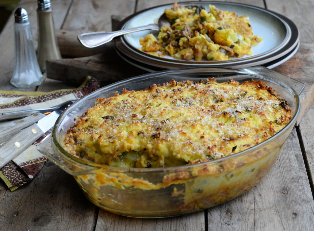 Shepherd’s pie van prei € 14,00 p.p. Vegetarisch