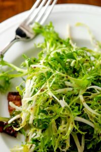 Weer eens wat anders dan rijst. Gort is een ‘vergeten’ graan, maar zeer voedzaam, gezond en lekker. De risotto wordt gemaakt met zelfgetrokken bouillon van geroosterde groentes, diep van smaak. Met lekker veel Parmezaan erdoor. Erbij krijg je geroosterde bospeentjes, en een groene bladsalade.