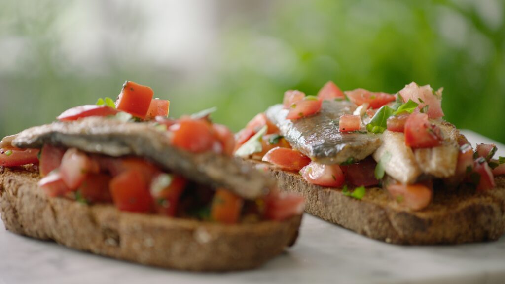 Bruschetta met sardine of (V) met geroosterde pompoen