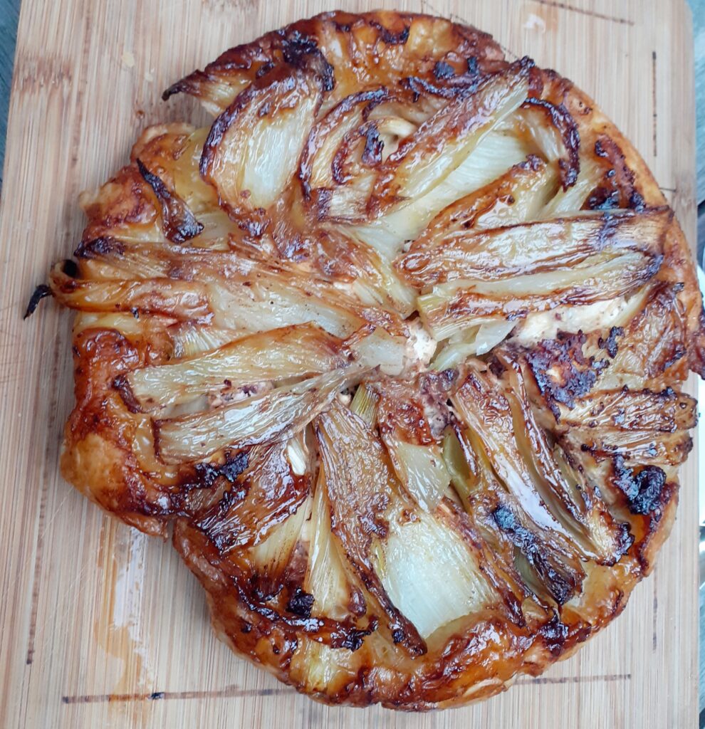 Tarte tatin maak je meestal met appel, maar hartig kan ook! Het is een omgekeerde taart, een heerlijke combinatie met de zoete gekarameliseerde uitjes en dan die sterksmakende Taleggio kaas erbij. Een geheid succes bij een etentje. Lekker met een frisse salade erbij, als tegenwicht voor de nogal machtige taart.