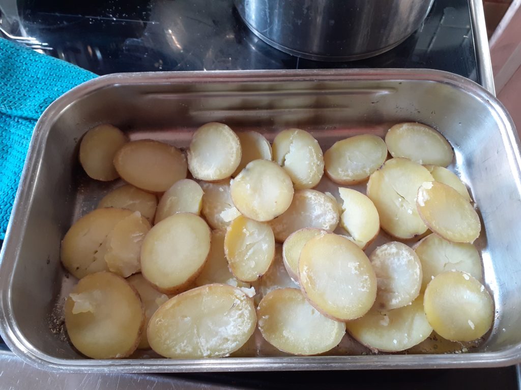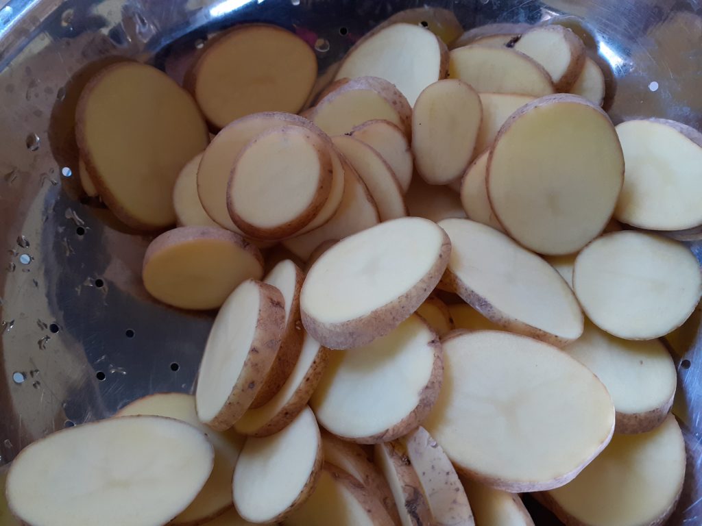 • 8 grote aardappels in schijfjes van 0,5 cm (circa een 1- 1,5 kilo)
